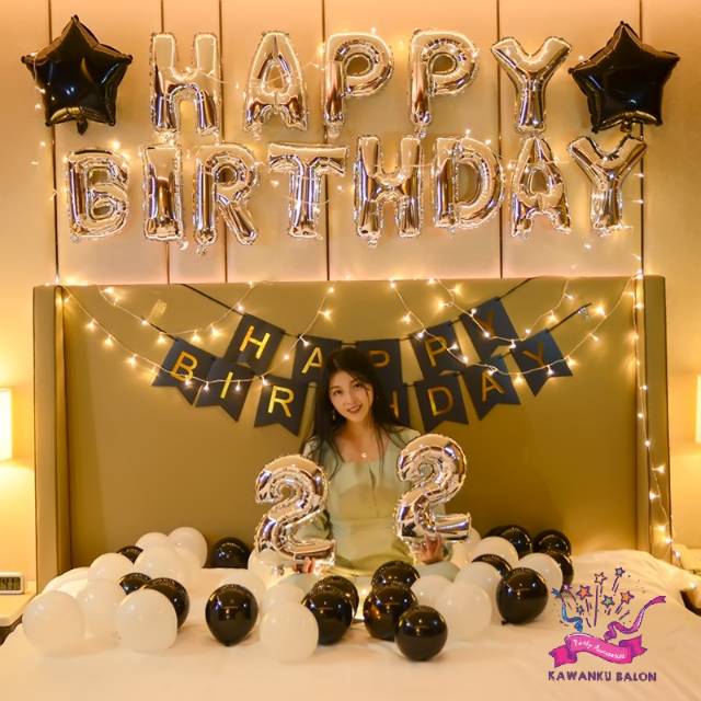 HAPPY BIRTHDAY LED SILVER BLACK SET DEKORASI DEKORASI . Sumber Gambar : shopee.co.id